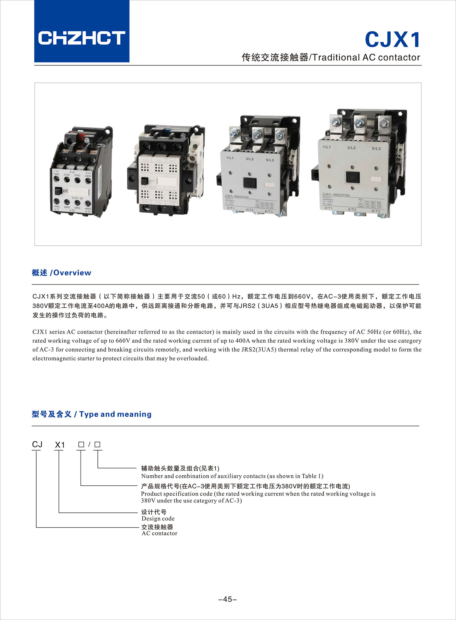 CJX1传统交流接触器产品说明书