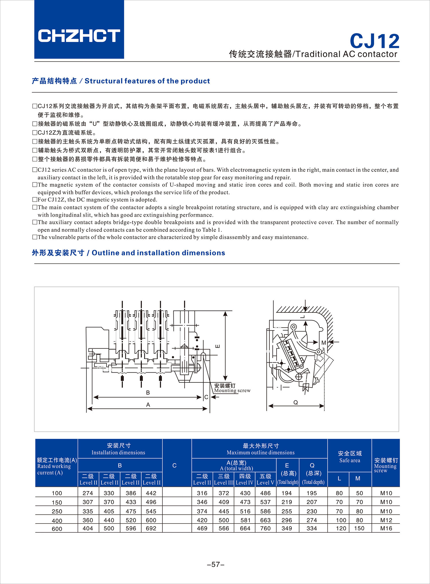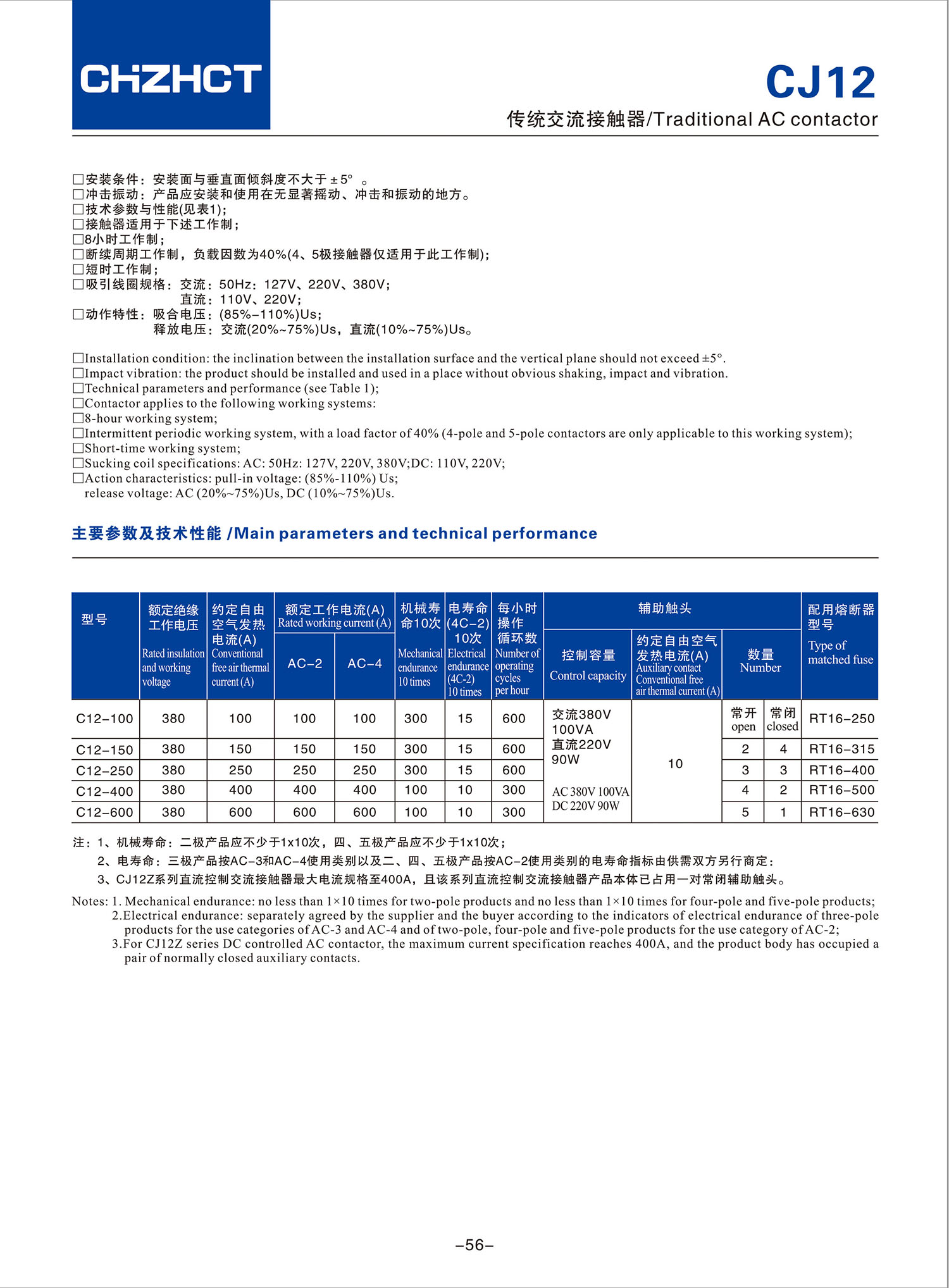 CJ12传统交流接触器产品说明书