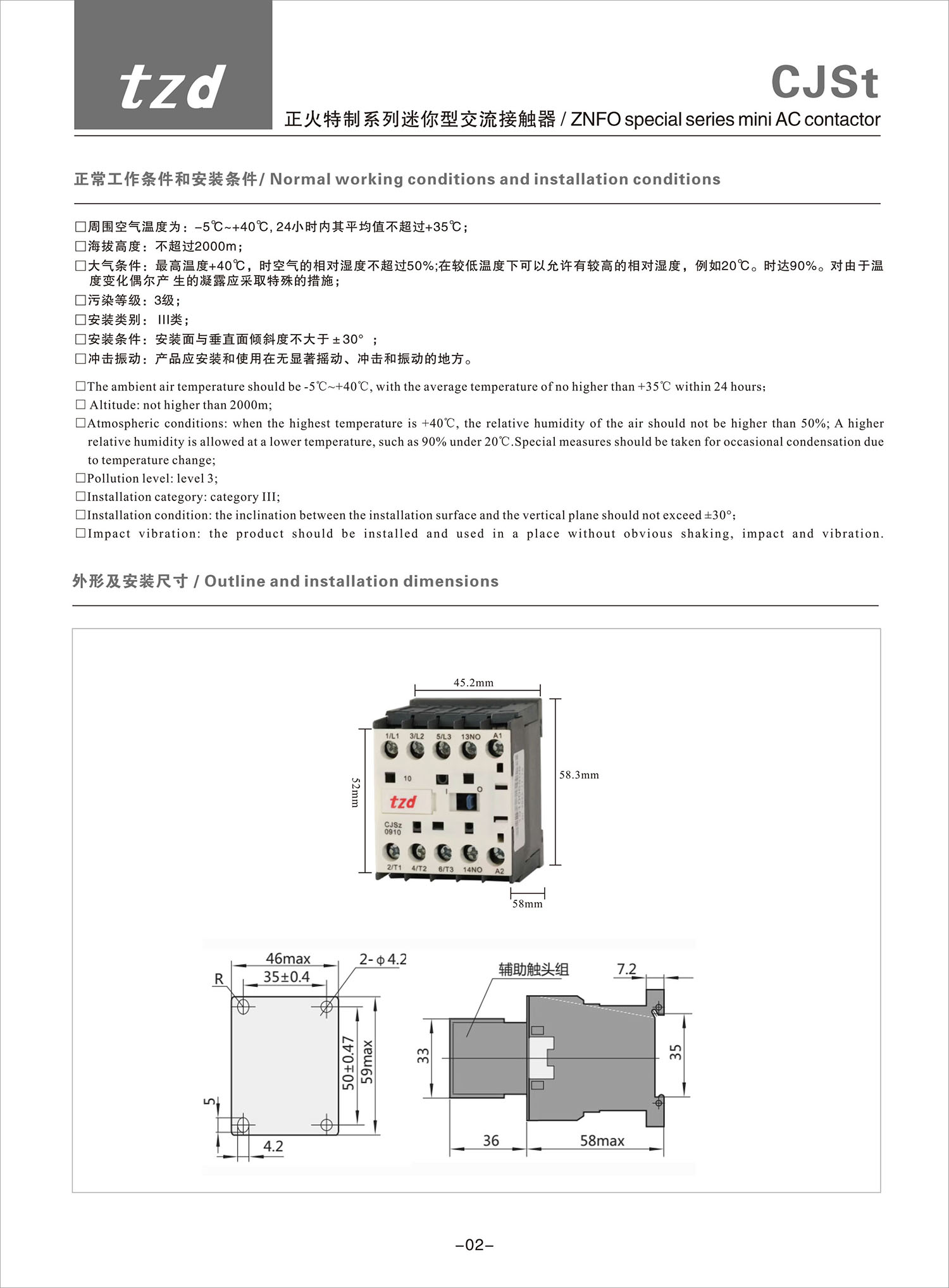 CJSt 正火特制系列迷你型交流接触器产品说明书