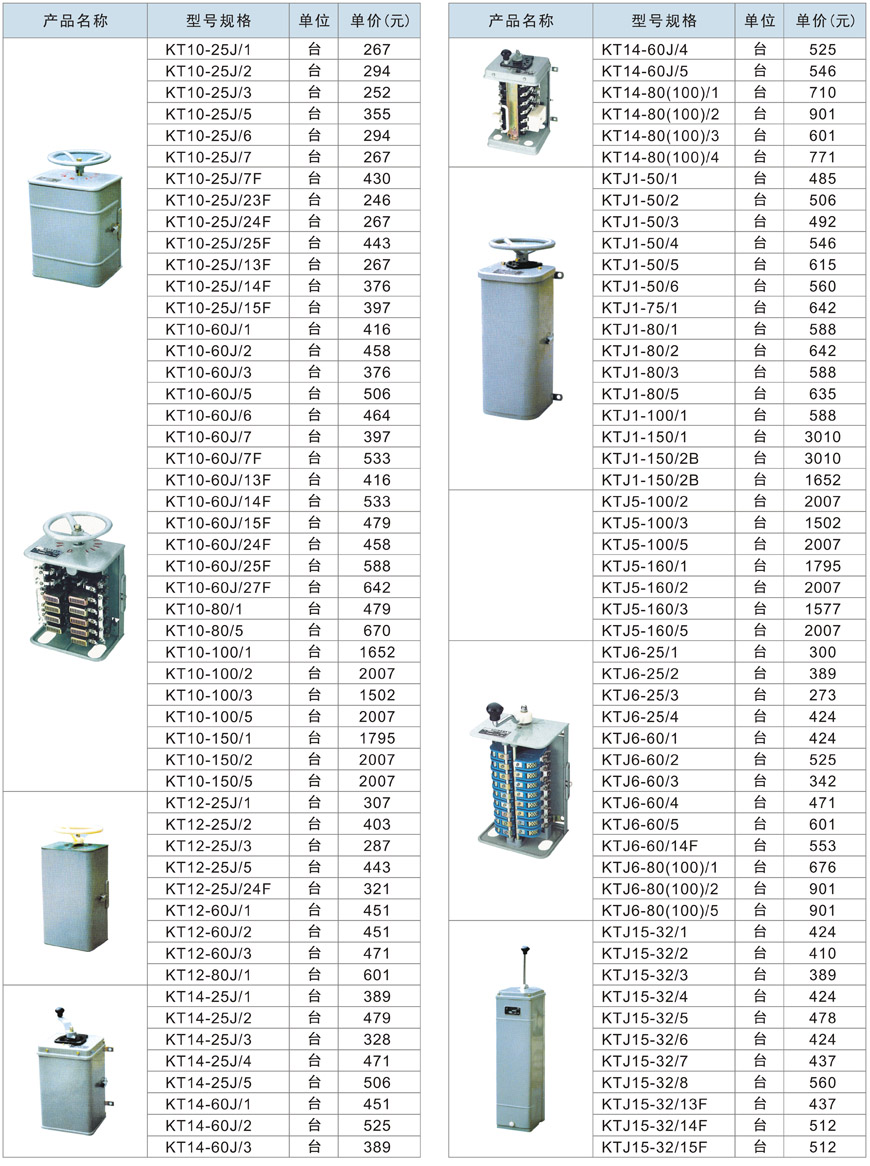 KT10、KT12、KT14、KTJ1、KTJ5、KTJ6、KTJ15交流凸轮控制器