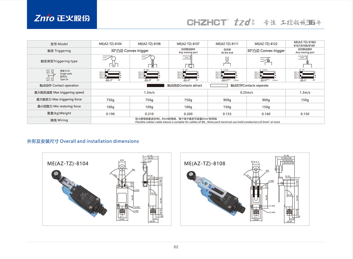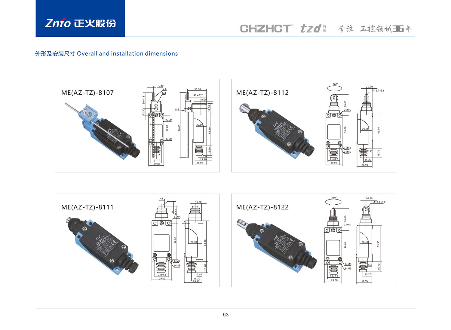 ME(AZ-TZ)限位开关_行程/限位开关_行程/微动/跑偏/拉绳/超速_工业控制与保护_产品中心_ballbet贝博电气股份有限公司